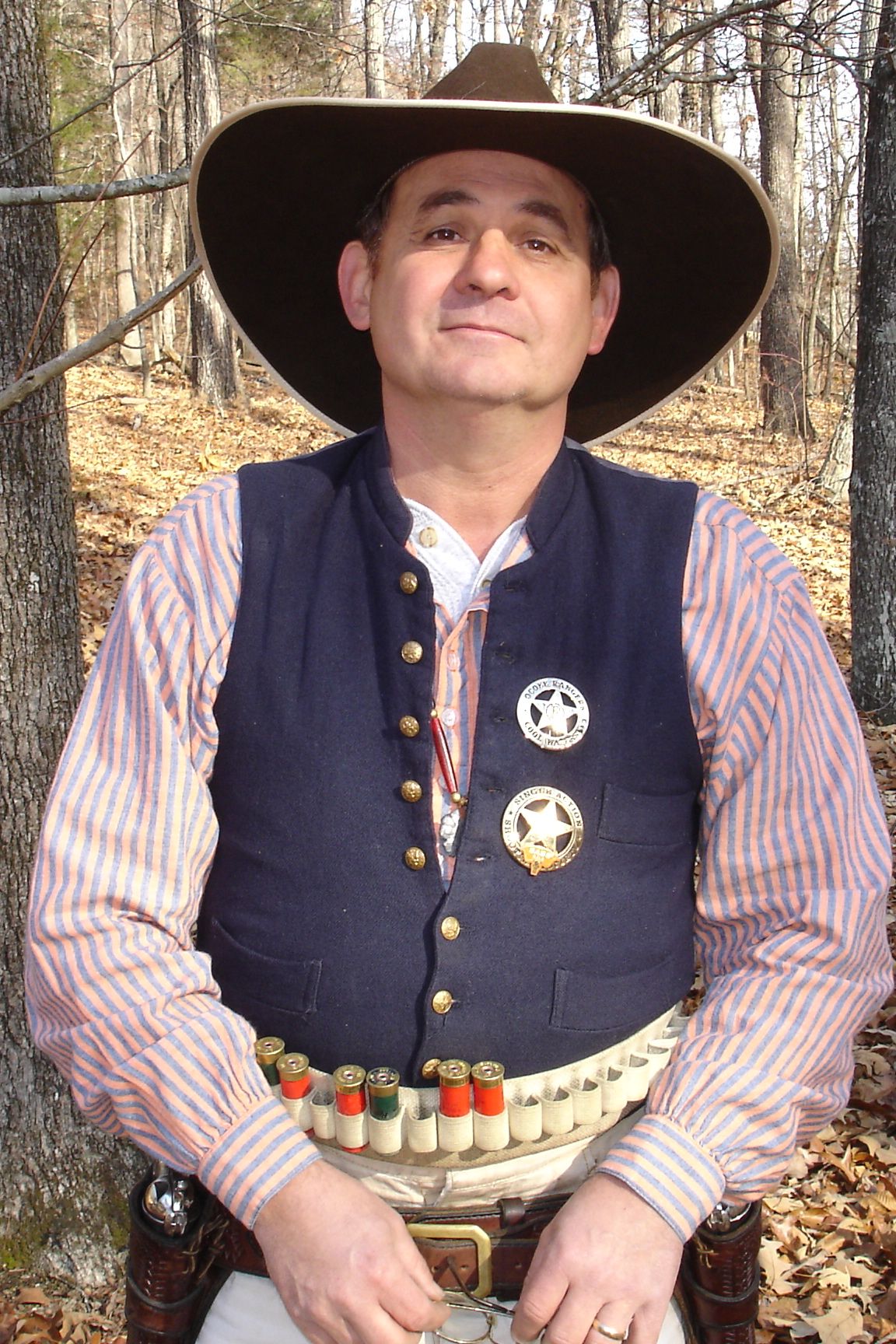 Cool Waters wears many hats: he's a very good cowboy shooter, he makes and sells bullets (Saddlebag Bullets), and he's teaching his daughter, Applesauce, to be a safe, competent junior cowgirl shooter.