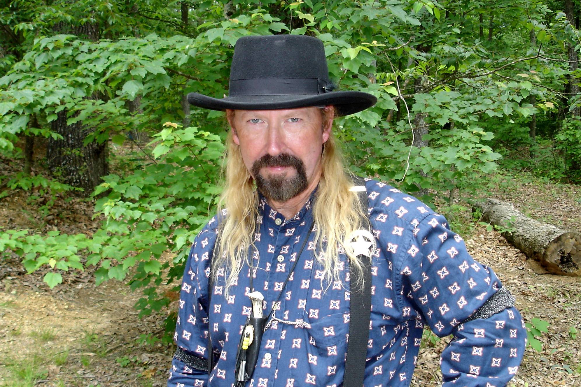 Fast Harley shoots Gunfighter, and shoots very well. In character, he favors a look that's much like that of Wild Bill Hickok. He's showing his "gunfighter look" here. He's a regular shooter in the pre-match Bufflao Shoot. Harley and his Gunfigher shootin' better half, Last Kiss, lead posses and are always working members of the posses in which they shoot.