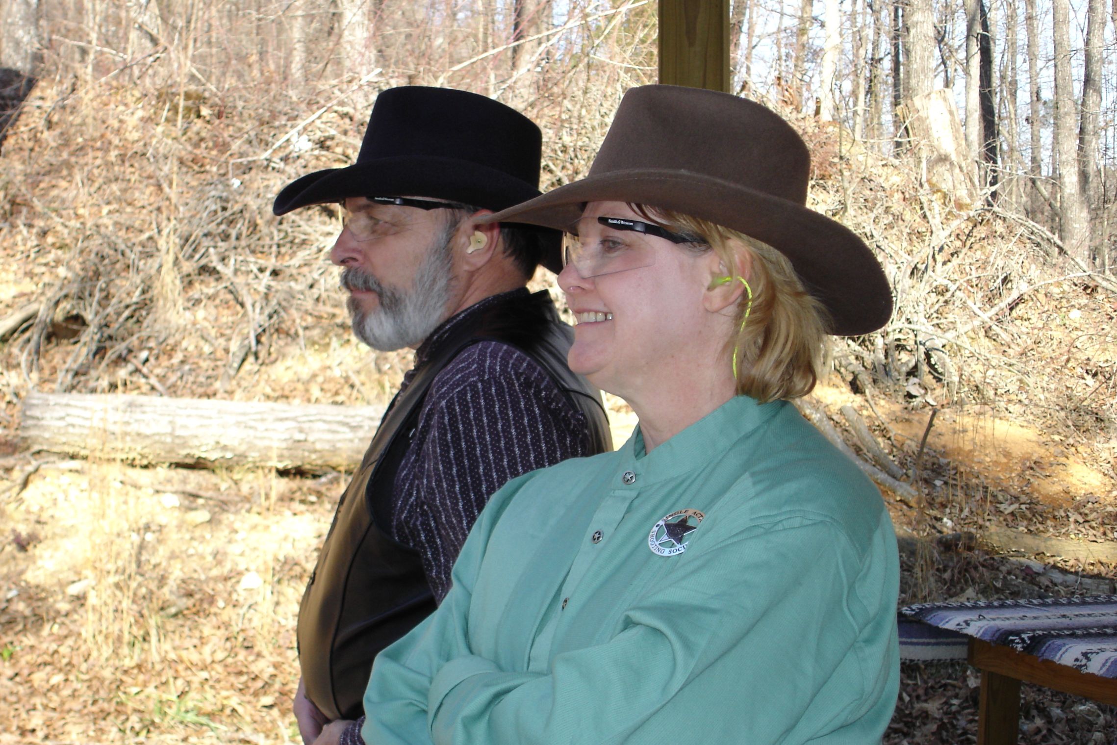 Dabnabit Deb and Keystone, a couple of shooters in profile. Whatever's happening, Keystone is serious about it, and Deb sees the humor.