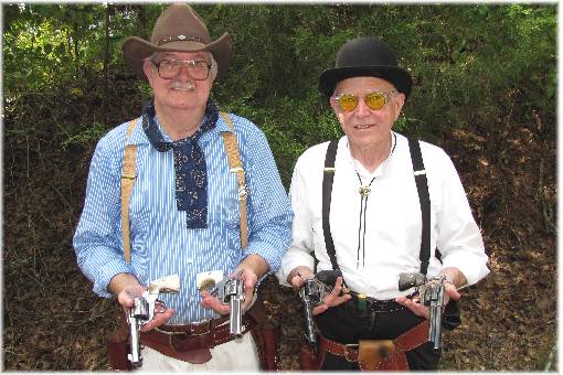 Pistol Pardners. Tin Pot 9 (Left) With His Pair of Pistols, and the Rev. Adam Jones With His Prayer Pistols.