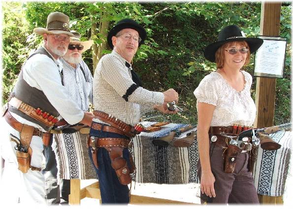 Calico Nicole shot her 2nd consecutive No-Misses Match at the August Shoot. 24 other shooters also shot matches with no misses, including Unpleasant, who captured the TOP GUN honors for the shoot, and Lulu McGoo, the Top Lady Shooter. And the Buffalo Shoot? Marshal Too Tall won the whole thing, again: 1st in Long Range Single Shot and Lever Action Rifles, Long Range Pistol and .22 Caliber. That’s not a bad day’s work.