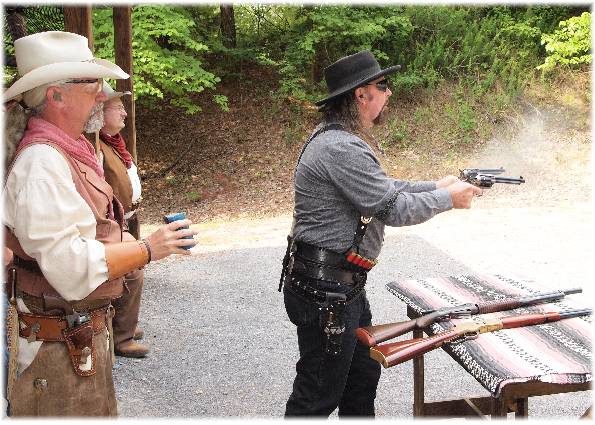 Attendance was down a bit at the May, Memorial Day Shoot. Several shooters ventured out to Mississippi to go rabbit hunting. Purly said something about a bunch of shooters going to Rabbit Ridge. Hope they got some for the pot. That’s a long way to go, if they didn’t get any rabbits. Ocoee Red was 1 of the rabbit hunters, but he left Shez A Pistol to help control the steel bandits on our range.