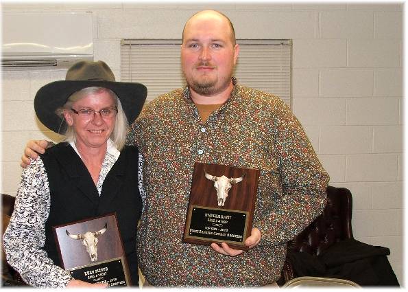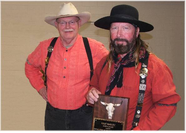 Then shooting Awards were presented to the cowgirls and cowboys who shot a bit better than the rest of us during 2013. Unpleasant was presented the 2013 TOP GUN Award. Lulu McGoo received the 2013 Top Lady Shooter Award. Hurricane Charly and Unpleasant were neck & neck until the November shoot. Lulu McGoo had a lock on her award months ago.